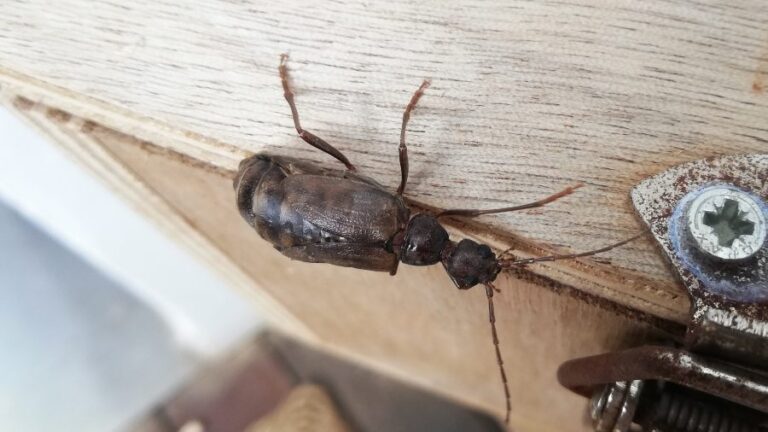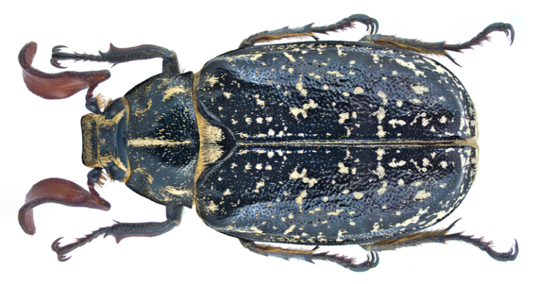 Gran escarabajo de las colmenas (Oplostomus fuligineus, familia Scarabaeidae)